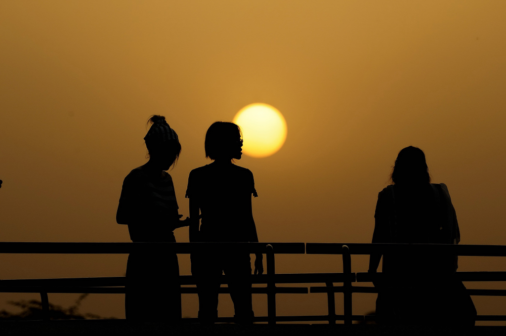 In photography, when you place the subject between the light source and the camera, a silhouette is created. The subject appears dark while the background remains bright. A distinct outline of the subject, along with a clear background, creates a good silhouette. During sunrise and sunset, the light is dramatic and is positioned low in the sky. That is a good time to shoot silhouettes outdoors.