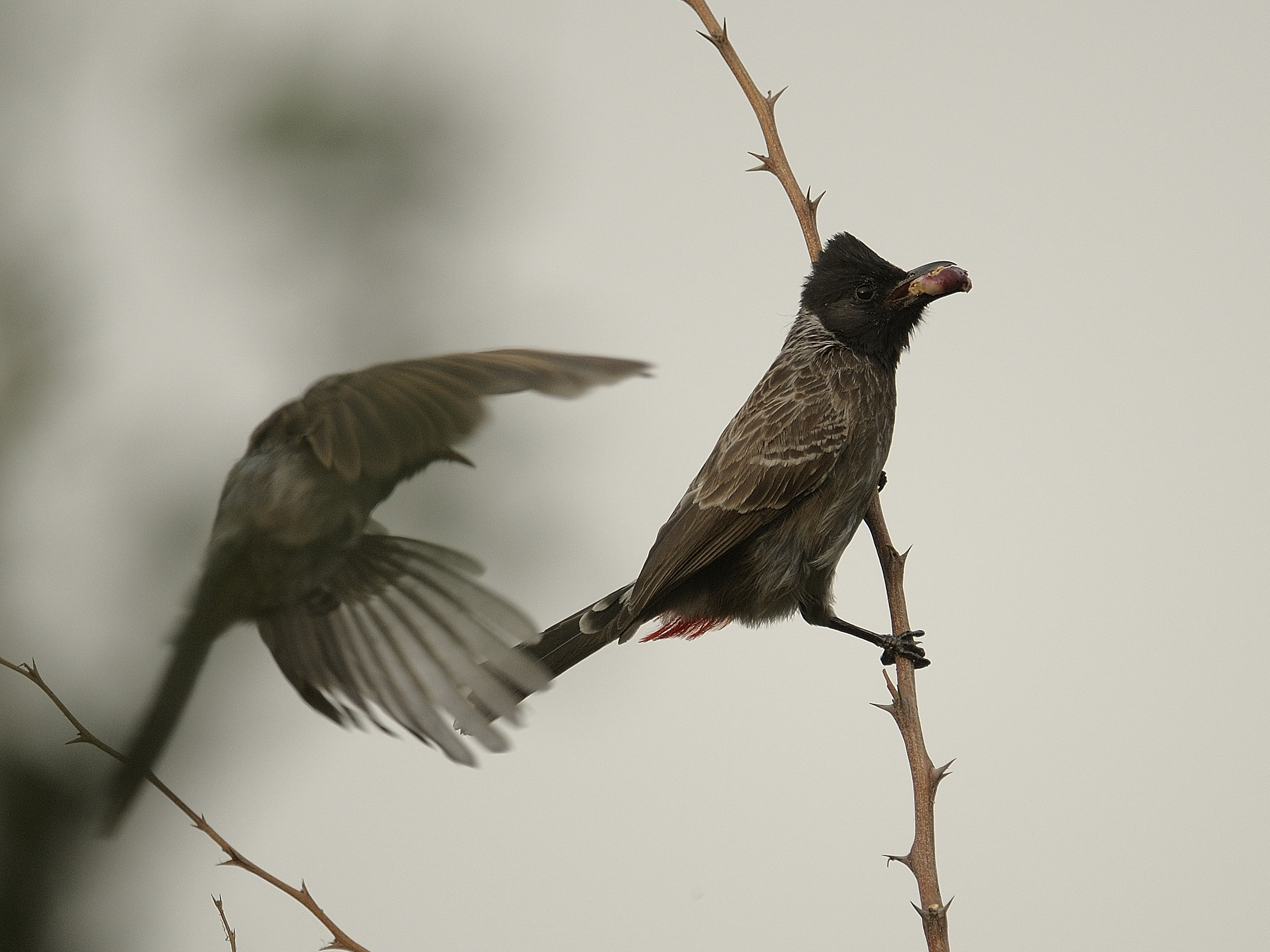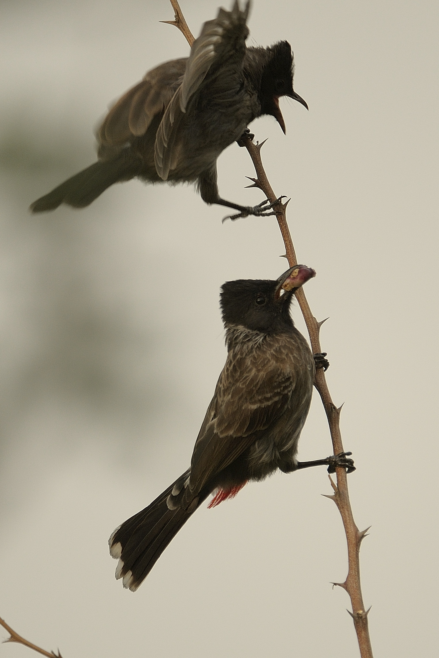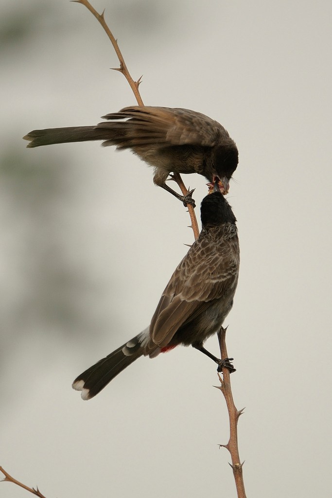 Parent Red-vented bulbuls feed their young ones by regurgitating partially digested food. Bulbul babies need to be fed frequently, and both parents share feeding duties. Bulbul parents eat and partially digest food; this partially digested food is then fed to the chicks.