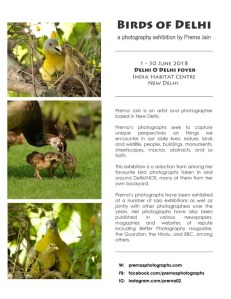 Event Description: EXHIBITION “Birds of Delhi” A Photography show by Prerna Jain