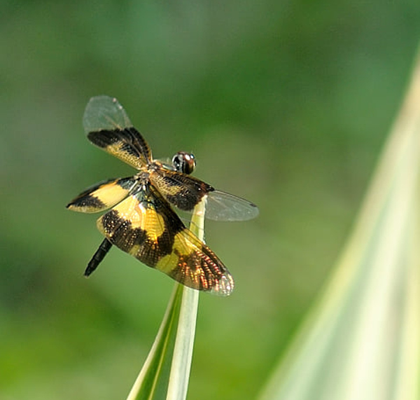 Variegated flutterer(Rhyothemis variegata), or the Common picture wing is a dragonfly that flies like a butterfly and can be thus mistaken for a butterfly.
