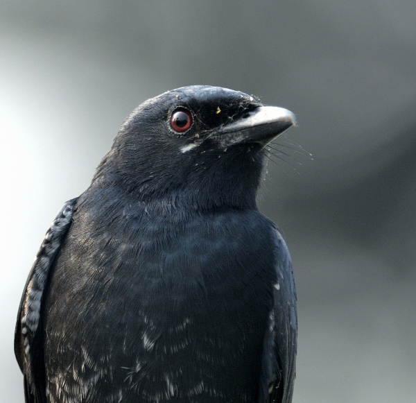 Black Drongo is an all black bird with a distinctive forked tail. It feeds on insects, and can be seen perching on trees or on power or telephone lines.