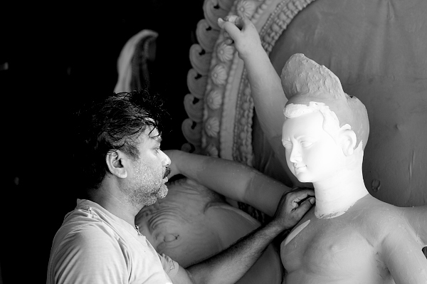 Durga pooja is around the corner. Idol makers from Kolkata have arrived in C R Park, Delhi. They are busy preparing Durga Idols made of straw, chaff, and clay. The Idols will be placed in the sun to dry and then painted in bright colours.