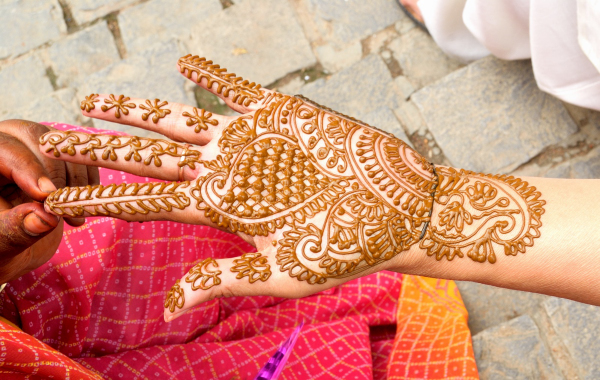In wedding ceremonies in the Indian Subcontinent, the Mehndi(Henna) ceremony is a fun-filled ceremony, organised by the bride’s and the groom’s families. Beautiful patterns are adorned on the palms and feet of the bride and on the groom’s palms.