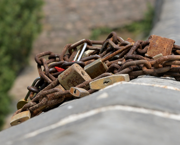 Couples lock padlocks, especially on bridges, and then throw the key away, symbolising their everlasting bond.