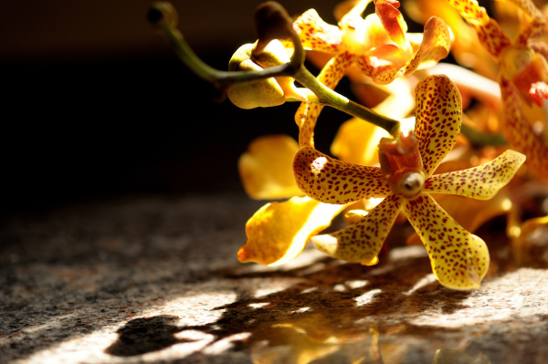 The petals at the edge of the yellow flower gradually merged with the floor, and the colour of the flower softened. The green sepals with a hint of yellow create a nice effect with the help of sunlight. Bokeh has created a slight drama in the background.