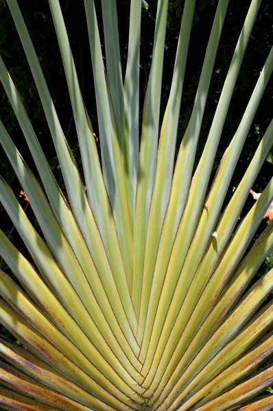 Palm trees have a distinctive form, characterised by tall, slender trunks and feathery fronds, which is very different from the more common branched trees.