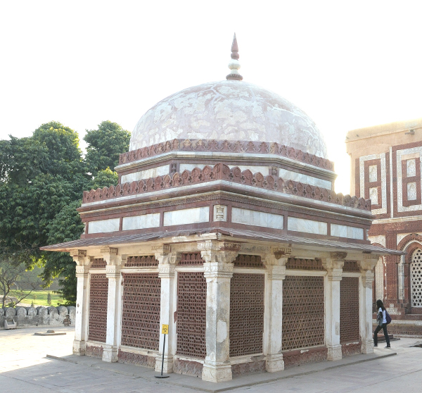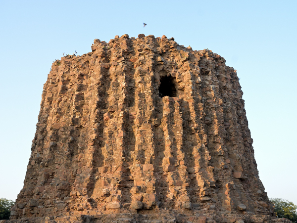 Qutub Minar was named after a Sufi saint, Khwaja Qutb-ud-din Bakhtiyar Kaki. It was said that this 240 ft tall tower connected Saint Qutbuddin Bakhtiar Kaki to heaven. That is why people called it “Qutub ki Laat (Qutub’s pillar). This red sandstone tower tapers from 2.75 metres in diameter at the top to 14.32 metres at its base.  It contains a spiral staircase of 379 steps. Initially, it had only four floors. The top floor was severely damaged when it was struck by lightning in 1368. Firoz Shah Tughlaq carried out extensive repairs on this and removed the top story. He replaced the fallen storey with two floors and crowned it with a cupola. He introduced white marble into the otherwise red and buff sandstone. The railings on the balconies were put there by the English.