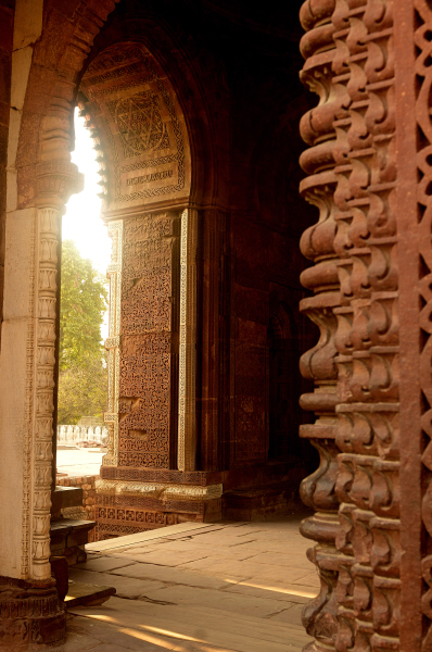 The Jami Masjid consists of cloisters surrounding a courtyard and was constructed using carved columns from the remains of demolished temples. This is all I knew about the Mosque until I read this fascinating history.
