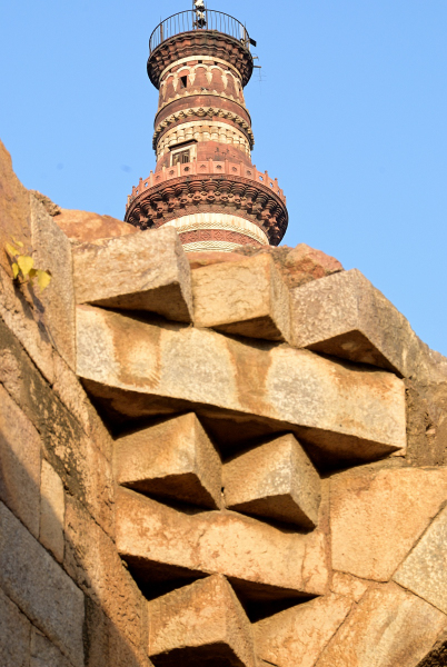 Qutub Minar, the tallest pillar in India and the tallest brick minaret in the world, was built during the early part of the Sultanate period by the first two slave kings. Some of the structures in the complex were built by the Khiljis. It was initially called Mazina (the muezzin‘s tower). Although it is a myth that it was used for calling people to prayers. The Qutub Minar is actually a victory tower. Another myth is that it was named after Qutb ud-Din Aibak, the first Sultan of the Delhi Sultanate. He had laid the foundation of the Qutub Minar. The construction began around 1192, but only the first story was completed before Qutb ud-Din Aibak’s death.  His successor, Shams-ud-din Iltutmish, completed the first three storeys; the upper two were added by Firoz Shah Tughlaq, who also made the marble additions to the tower.