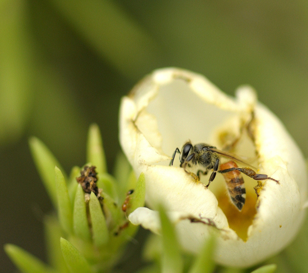 I think of this beautiful poem when I click pictures of little bees climbing in and out of flowers.