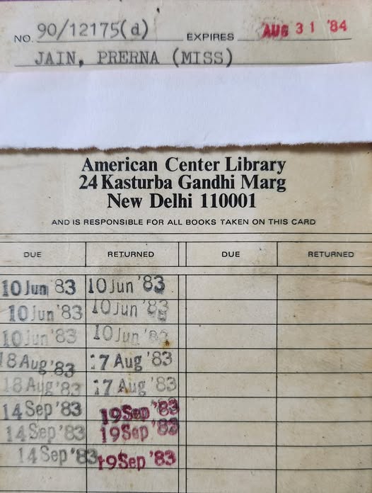 The air conditioning of the American Centre Library was exceptionally cool. I had to wear a full-sleeve shirt when visiting the library, even during the sweltering summers in Delhi. At home, we were accustomed to air coolers that required refilling with water twice a day. The water pipe snaked up to the other end of the house, where the tap was. The cooler overflowed, and the pipe mostly leaked on the way from the courtyard to the room.
