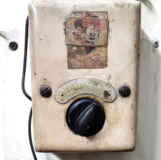 This fan regulator didn’t look this outdated in the 80s. Although it may not have looked beautiful, it functioned properly. Opened and repaired a few times. The Mini Mouse sticker on it is more than three decades old.