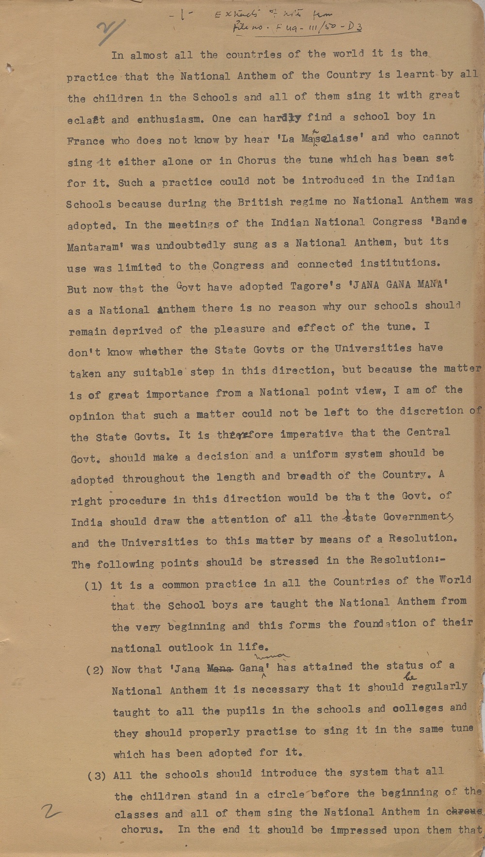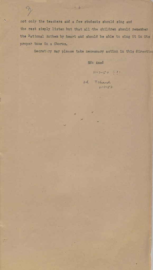 Maulana Azad, in 1950, conceptualised the practice of learning the National Anthem of the country by all children in schools, as evident from this letter from the National Archives of India (NAI), along with its original and translation.